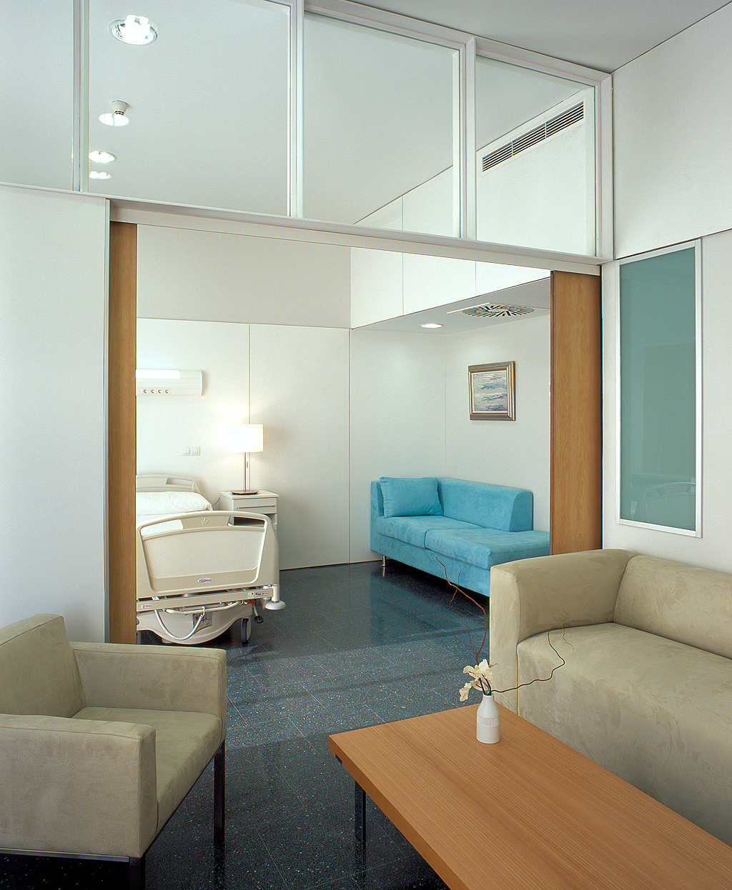 El confort a lo largo del recorrido y estancia del paciente y acompañantes, evitando la monotonía y la frialdad de este tipo de instalaciones. Trabajamos entonces por la calidez, la luminosidad y la transparencia y para dotar a las instalaciones de una estética cuidada mas cercana al mundo hotelero que hospitalario.
